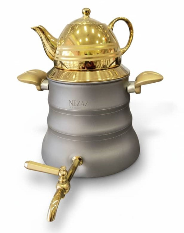 کتری قوری نزاز 6 لیتری طرح هرمی طوسی طلایی کد 3026