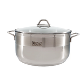 یکی از وسایل مهم در هر آشپزخانه ای، سرویس قابلمه و تابه می باشد. داشتن یک قابلمه و ماهیتابه مناسب با کیفیت مرغوب، لذت آشپری را دو چندان می نماید. تابه استیل نزاز سایز 16 یکی از قابلمه های موجود در بازار با ظاهری بسیار زیبا، درب پیرکس با کیفیت خوب می باشد. این محصول دارای کفه ی ضخیم می باشد.