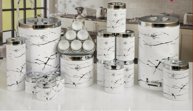 سرویس آشپزخانه 21 پارچه طرح سنگ سفید درب نقره ای