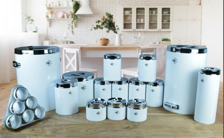 اقلام تشکیل دهنده: شش عدد ظرف حبوبات – سه عدد پاسماوری – یک عدد ظرف قند – یک عدد ظرف شکر – یک عدد ظرف پاستا (ماکارونی) – یک عدد ظرف برنج – یک عدد سطل زباله – شش عدد ظرف ادویه به همراه پایه (7پارچه)