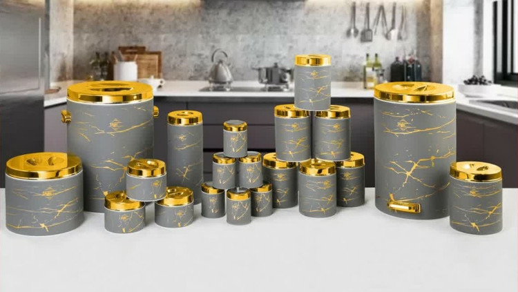 سرویس آشپزخانه 21 پارچه طرح سنگ دلفینی درب طلایی