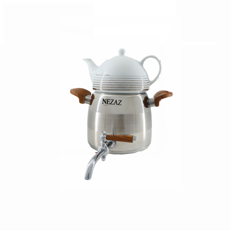 نزاز کتری و قوری هرمی 3 لیتری استیل دسته چوب کد 2804