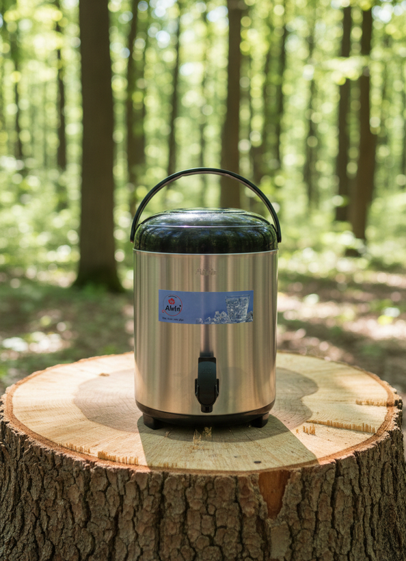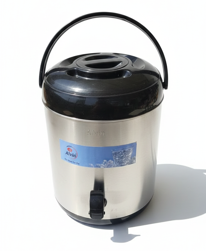 کلمن10لیتری داخل استیل آلوین یکی از محصولات بی نظیر این شرکت میباشد، ظرفیت این کلمن 10 لیتر میباشد، این محصول از بدنه استیل ساخته شده است، قسمت زیرین و درب این محصول از پلاستیک با کیفیت براق ساخته شده است، این محصول دارای شیر یدک میباشد تا زمانی که شیر اول خراب شد براحتی تعویض کنید، این محصول دارای پایه میباشد تا از سطل زمین و میز فاصله بگیرد تا براحتی لیوان بر زیر شیر قرار گیرد، جداره داخلی این محصول از جنس استیل ضد زنگ ساخته شده است، بر روی درب این محصول 2 عدد پیاله تعببیه شده است تا در صورت نبود لیوان از انها استفاده شود، این محصول قابلیت نگهداری 12 ساعت آب سرد و 1 الی 2 ساعت آب داغ را دارد
