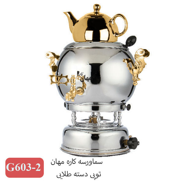سماور مهان 3کاره ترموکوبل دار دسته طلایی 2-603
