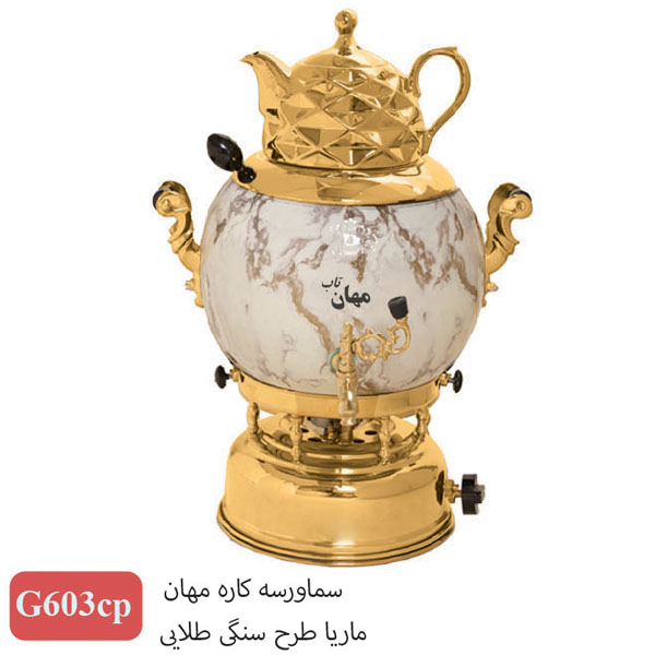 سماور مهان 3کاره ترموکوبل دار سنگی دسته طلایی 603CP