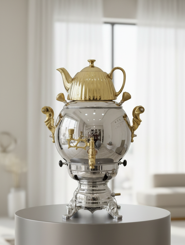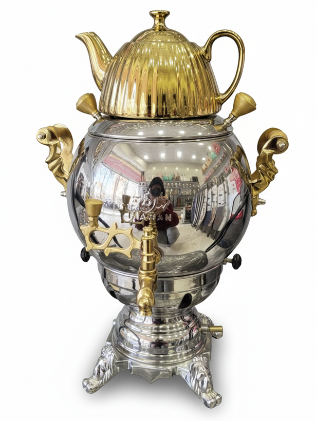 3.طراحی زیبا و کلاسیک: این سماور با طراحی کلاسیک و زیبایی که دارد، جلوه خاصی به فضای آشپزخانه یا اتاق پذیرایی شما میبخشد.