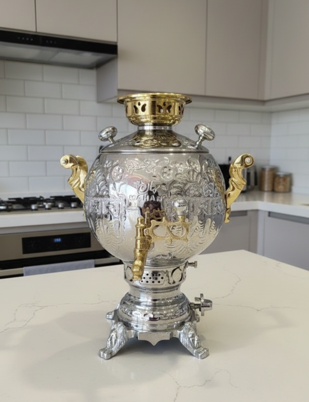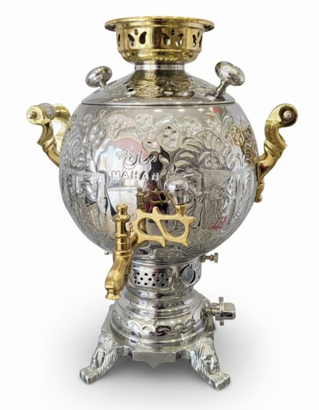 3.طراحی زیبا و کلاسیک: این سماور با طراحی کلاسیک و زیبایی که دارد، جلوه خاصی به فضای آشپزخانه یا اتاق پذیرایی شما میبخشد.