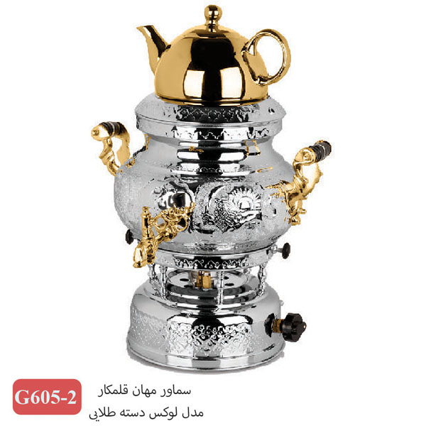سماور مهان 3کاره ترموکوبل دار هخامنشی دسته طلایی2-605