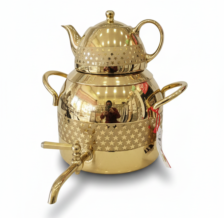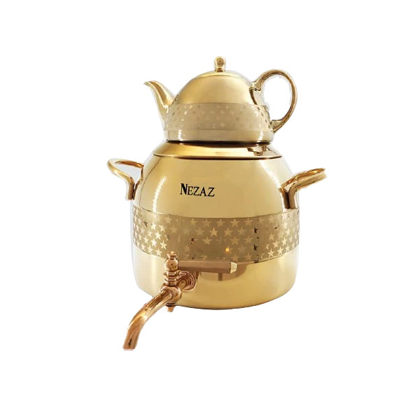 کتری قوری نزاز 5 لیتری طرح ترک تمام طلایی ستاره کد 3045