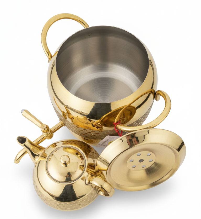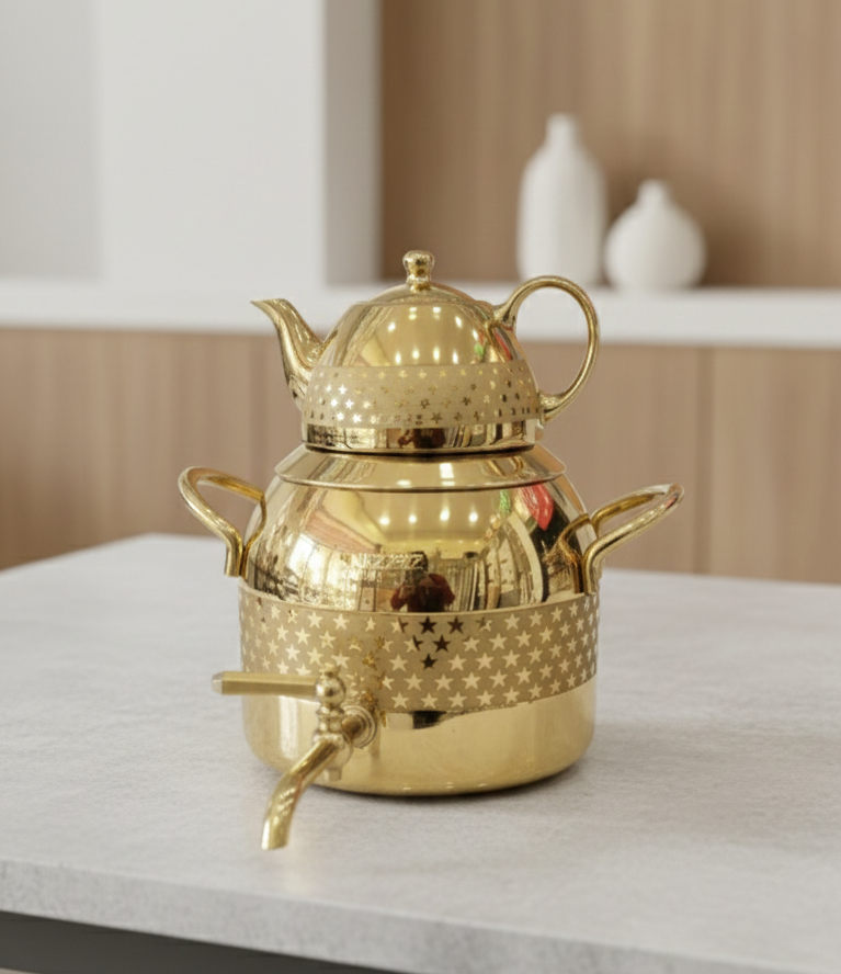 کتری و قوری نزاز ۵ لیتری طرح ترک تمام طلایی یکی از لوکسترین و کاربردیترین انتخابها برای آشپزخانههای مدرن است. این محصول با طراحی خاص و رنگ طلایی درخشان، جلوهای متفاوت به دکوراسیون شما میدهد و علاوه بر زیبایی، کیفیتی بینظیر را در اختیار شما قرار میدهد.