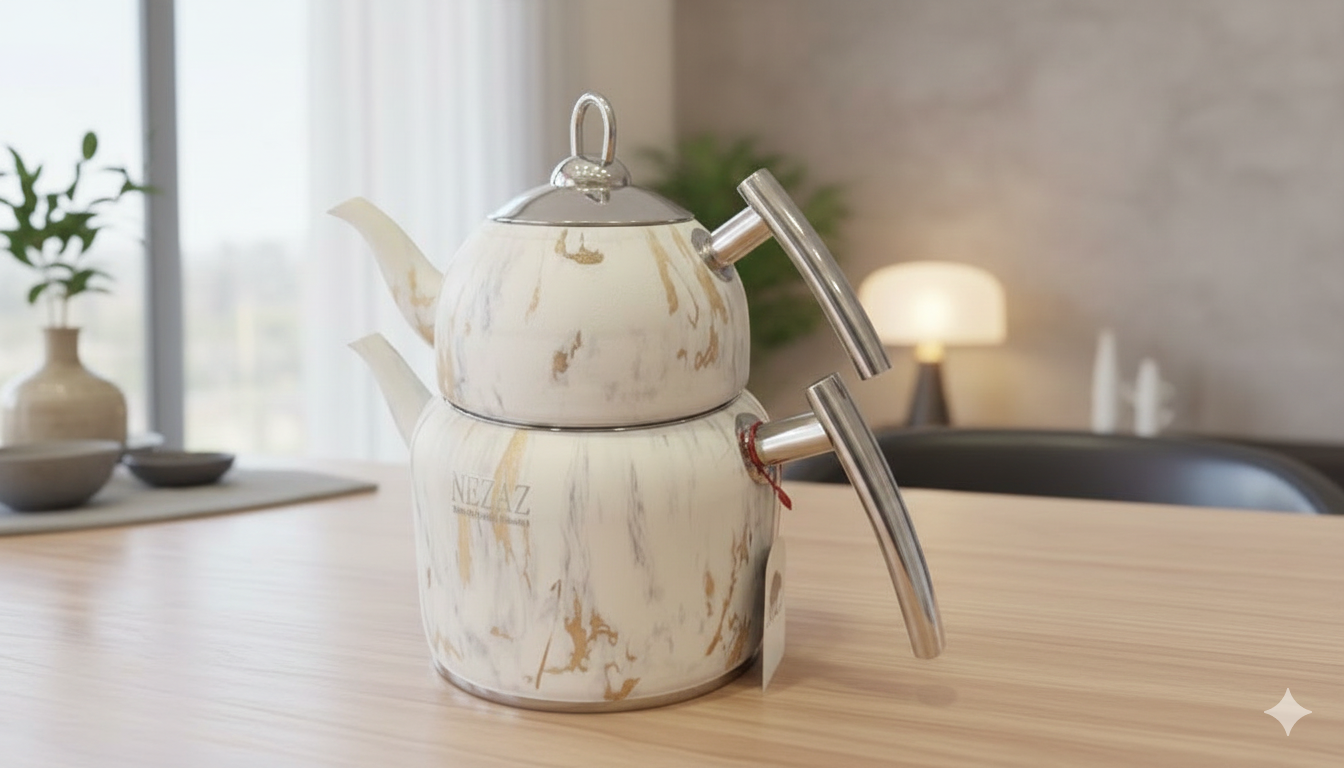 کتری و قوری ۲/۵ لیتری نزاز یکی از محبوبترین ستهای چایساز خانگی است که با طراحی شیک و کیفیت بالای ساخت، تجربهای لذتبخش از دم کردن چای خوشعطر را برای شما به ارمغان میآورد.