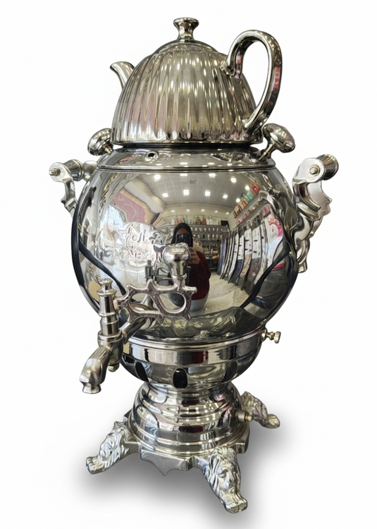 3.طراحی زیبا و کلاسیک: این سماور با طراحی کلاسیک و زیبایی که دارد، جلوه خاصی به فضای آشپزخانه یا اتاق پذیرایی شما میبخشد.