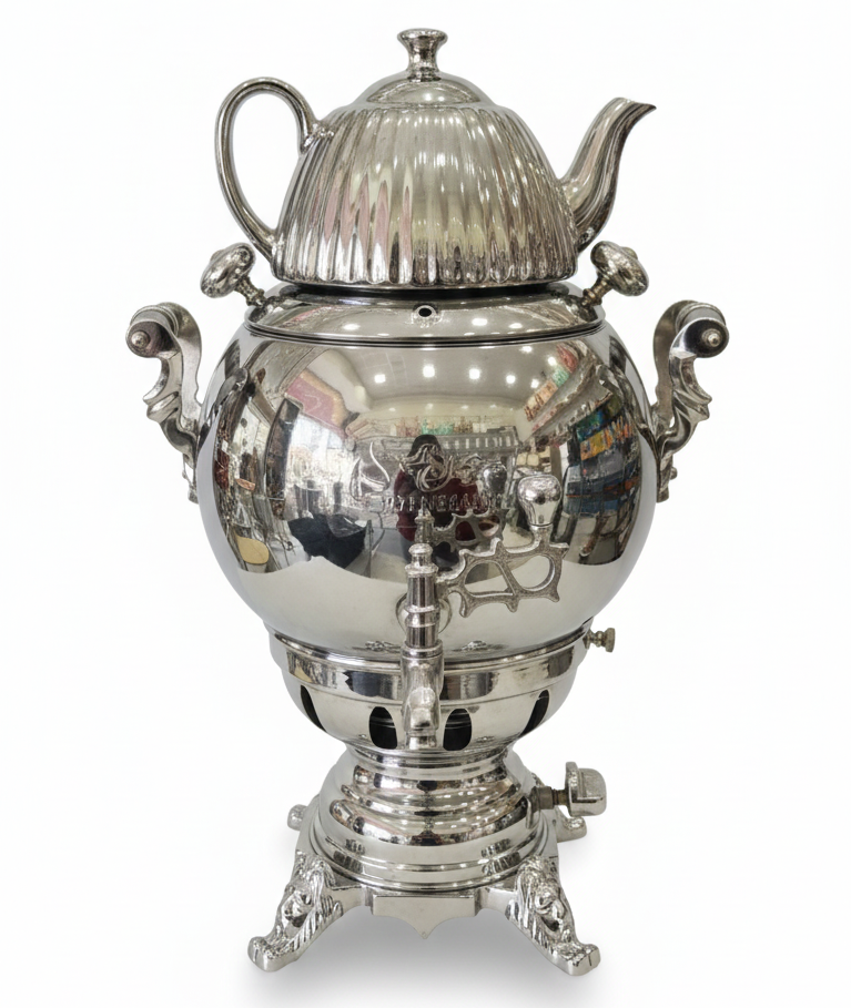 3.طراحی زیبا و کلاسیک: این سماور با طراحی کلاسیک و زیبایی که دارد، جلوه خاصی به فضای آشپزخانه یا اتاق پذیرایی شما میبخشد.