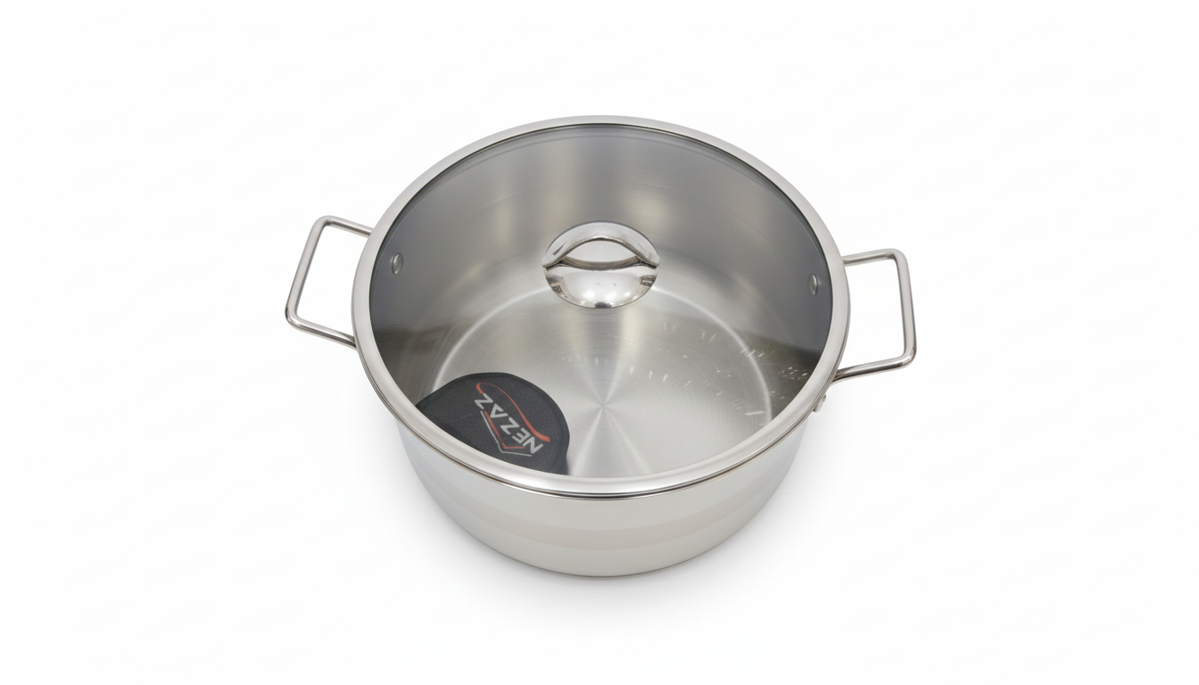 بدنه قابلمه از استیل ضدزنگ مقاوم ساخته شده و علاوه بر زیبایی، دوام بالایی در برابر حرارت و ضربه دارد. سایز 32 این قابلمه برای خانوادههای پرجمعیت یا مهمانیهای بزرگ کاملاً مناسب است. همچنین با گارانتی سهساله نزاز خیال شما از بابت کیفیت و طول عمر محصول راحت خواهد بود.