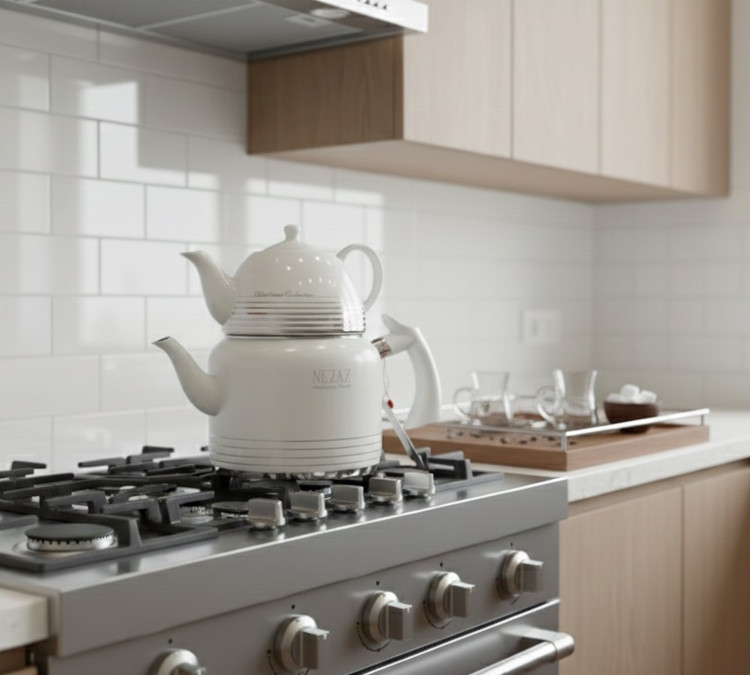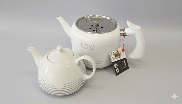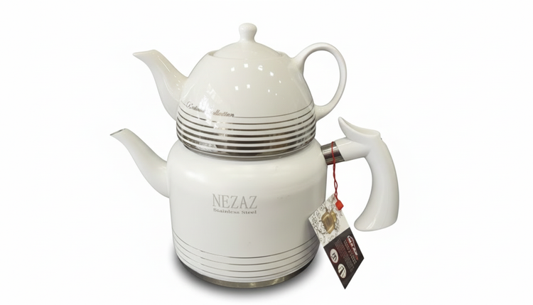 کتری قوری نزاز 2.5 لیتری لوله دار سفید کد 2406