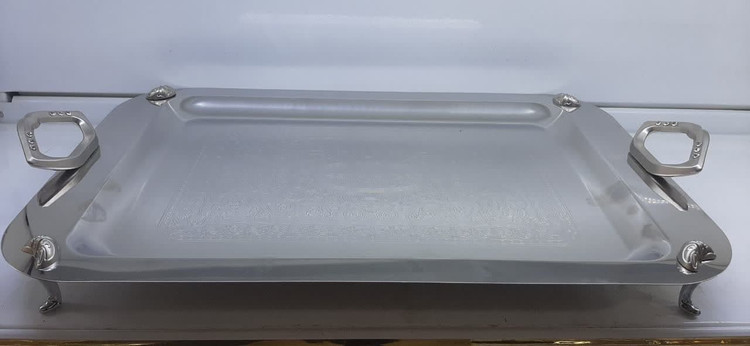 سینی دیاکو دسته نگینی نقره ای پایدار بزرگ دور ساده کف گلدار کد 322/5