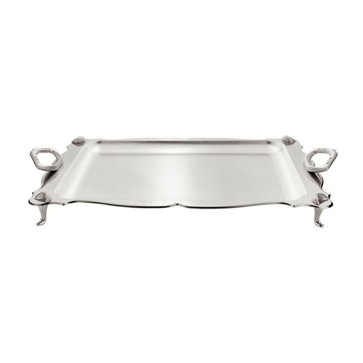 سینی دیاکو دسته نگینی نقره ای پایدار کوچک لب کنگره دارکف گلدار کد 500.5