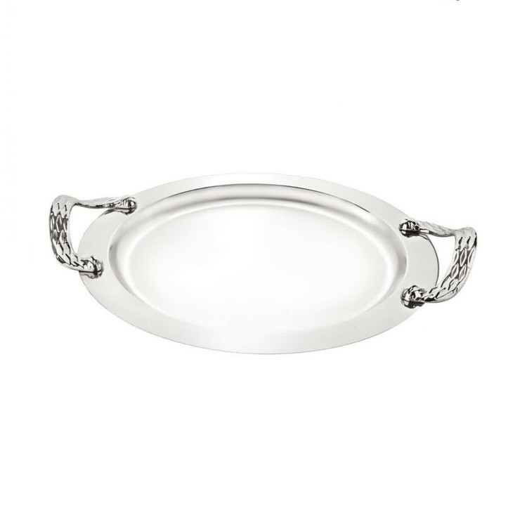 سینی دیاکو گرد دسته ماری نقره ای کف گلدار کد 6314
